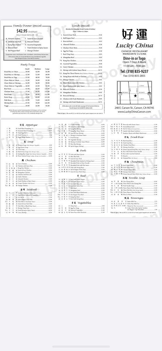 Welcome to Lucky China, your gateway to a delicious Chinese culinary experience nestled in the heart of Carson, California. This beloved restaurant is not just a place to eat; it’s a vibrant destination where flavors and aromas blend seamlessly to create an inviting atmosphere perfect for family-style dining.